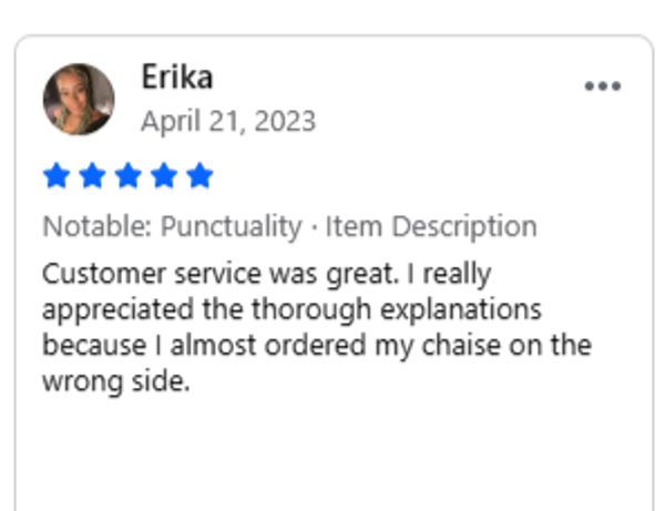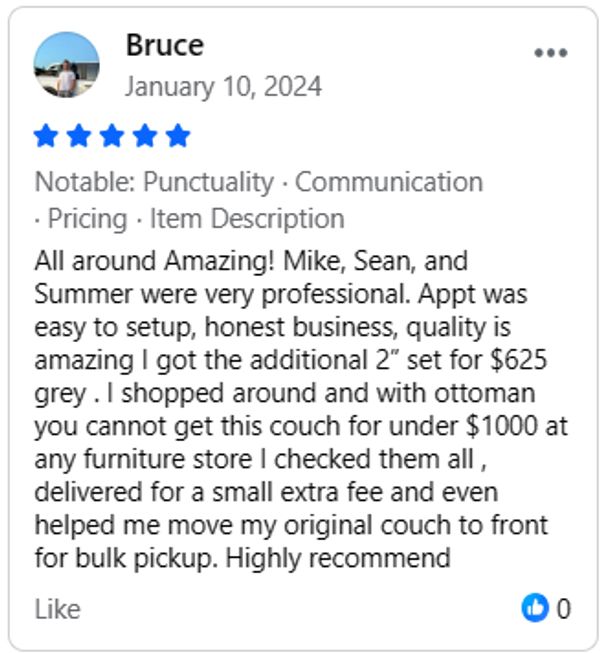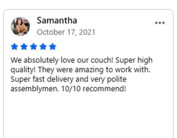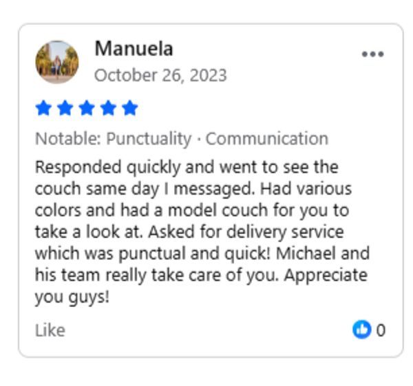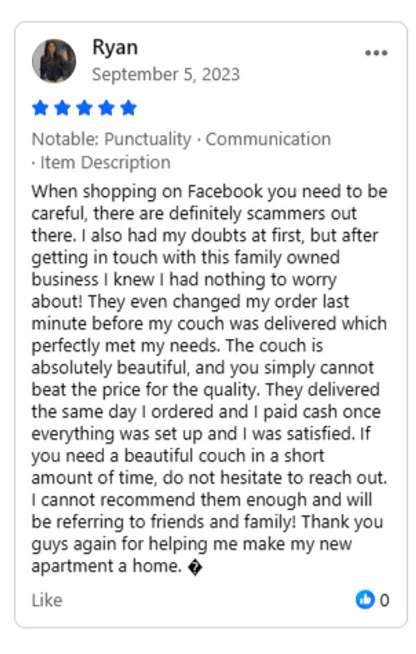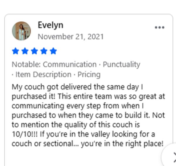 Want to make sure you like it before ordering? Come see the colors and sit on the couch before you decide to purchase.