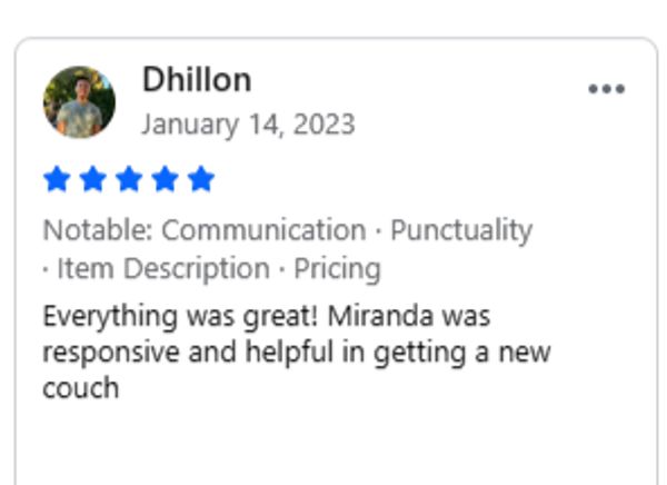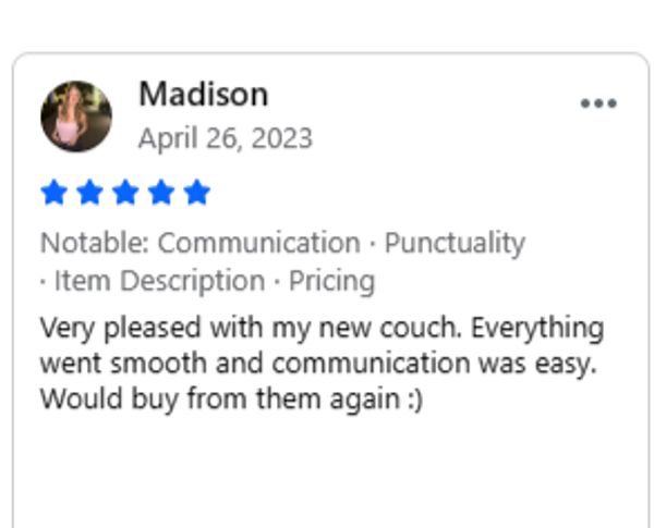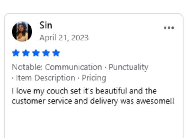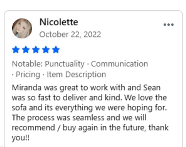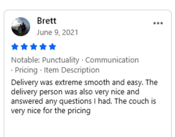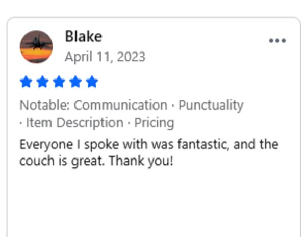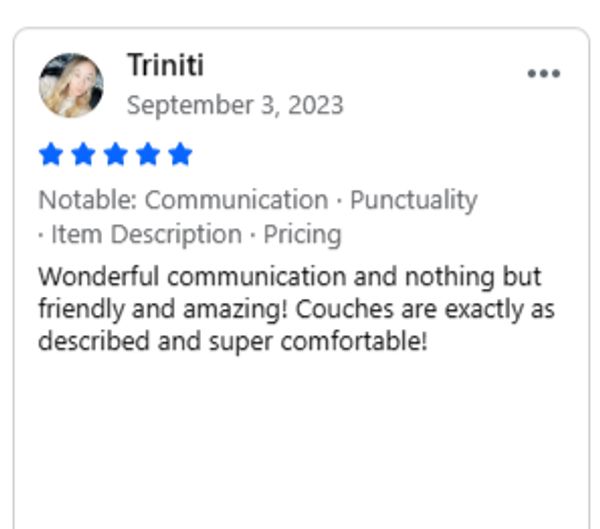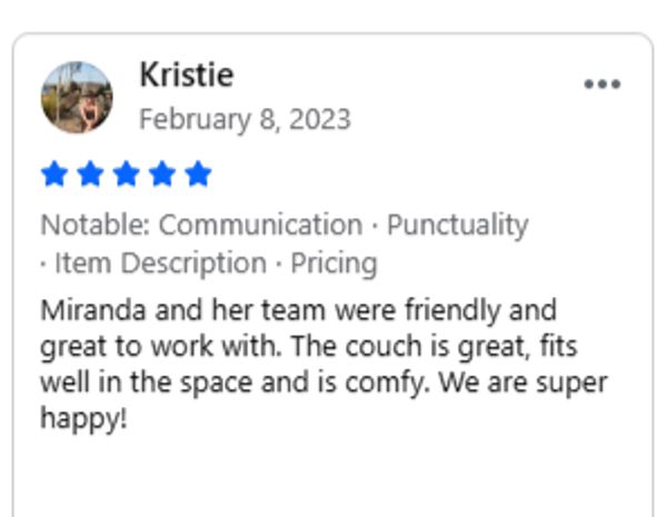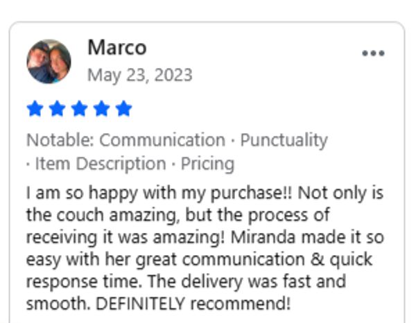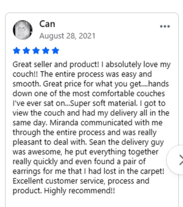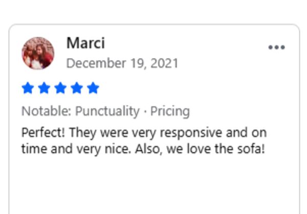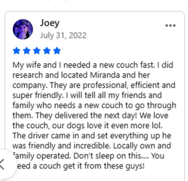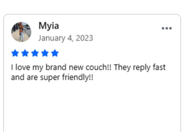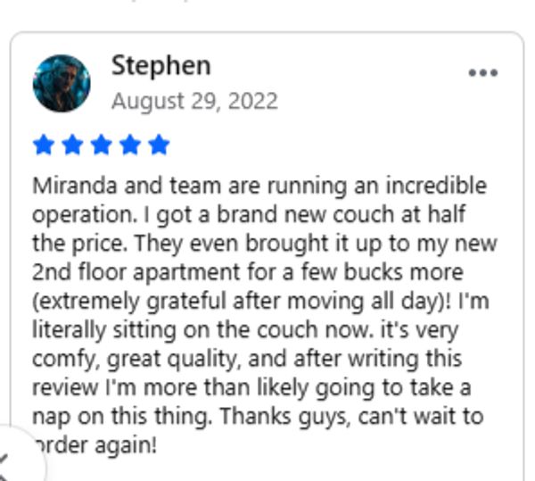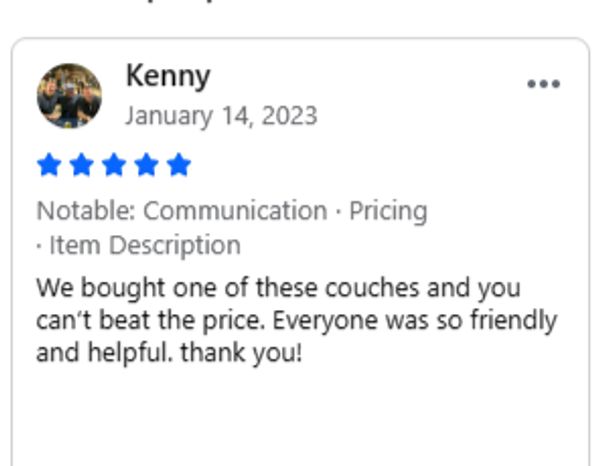 Call us when you arrive at your scheduled pickup time, and we will have your new couch ready.